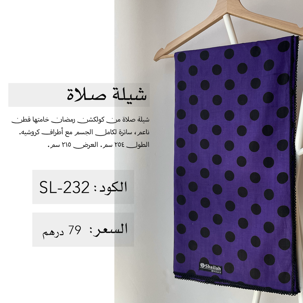 شيلة صلاة خامتها قطن ناعم، ساترة لكامل الجسم مع أطراف كروشيه.