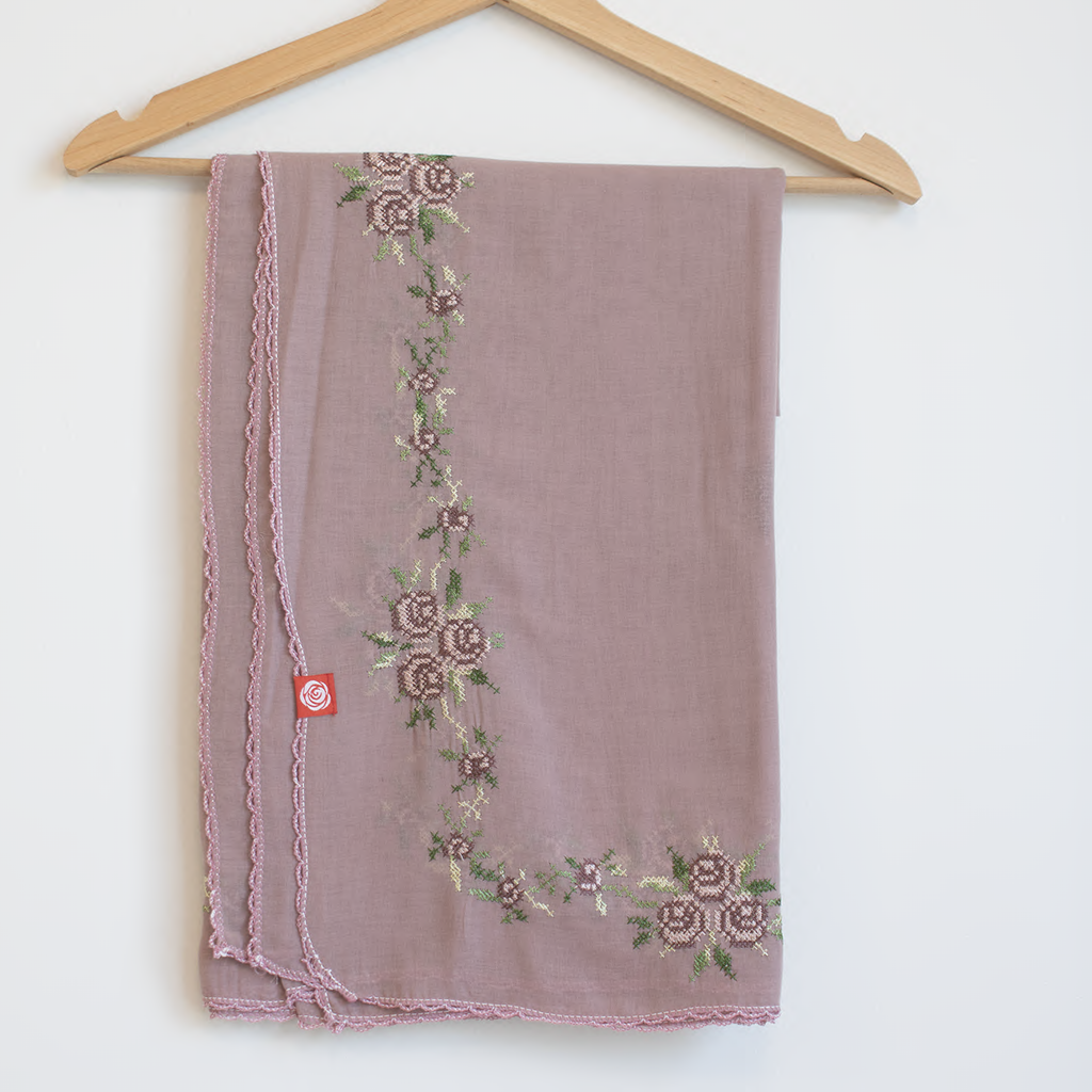شيلة بيت شغل كروس استيج و أطرافها كروشيه اربع جهات، ثابتة على الراس راقية ناعمة وخفيفة خامة ويل مريحة وتتميز بالجودة العالية وممتازة للإستخدام اليومي، اللون: موف فاتح الطول: 214 سم العرض:106 سم