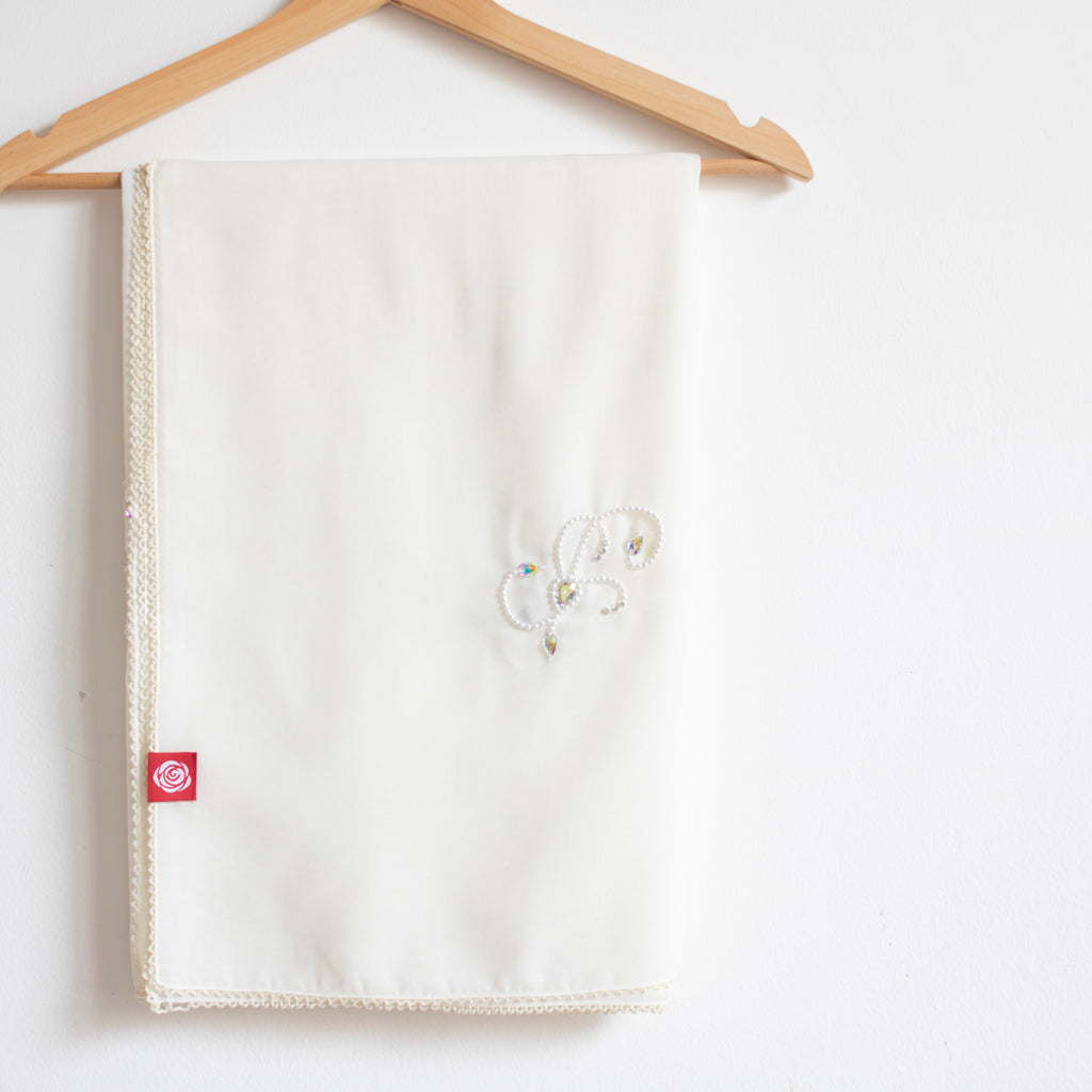 شيلة صلاة خامتها قطن ناعم، ساترة لكامل الجسم مع أطراف كروشيه. الطول ٢٥٤ سم . ٢١٦ سم .