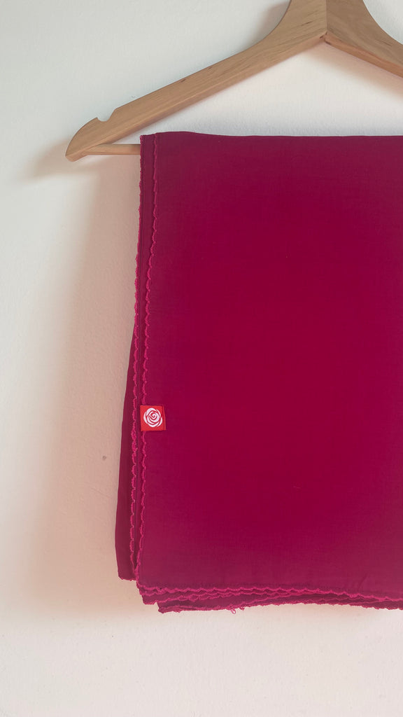 و أطرافها كروشيه اربع جهات، ثابتة على الراس راقية ناعمة وخفيفة خامة ويل مريحة وتتميز بالجودة العالية وممتازة للإستخدام اليومي، اللون: فوشي الطول: 214 سم العرض:106 سم