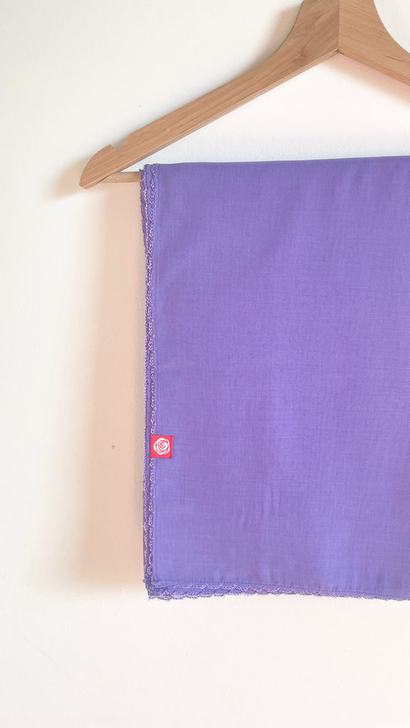 و أطرافها كروشيه اربع جهات، ثابتة على الراس راقية ناعمة وخفيفة خامة ويل مريحة وتتميز بالجودة العالية وممتازة للإستخدام اليومي، اللون: بنفسجي فاتح الطول: 214 سم العرض:106 سم