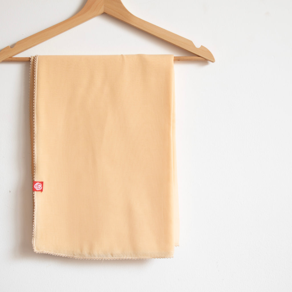 شيلة بيت سادة و أطرافها كروشيه اربع جهات، ثابتة على الراس راقية ناعمة وخفيفة  خامة ويل مريحة وتتميز بالجودة العالية وممتازة للإستخدام اليومي، اللون: بيج الطول: 214 سم العرض:106 سم