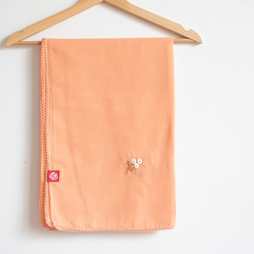 شيلة صلاة خامتها قطن ناعم، ساترة لكامل الجسم مع أطراف كروشيه. الطول ٢٥٤ سم . ٢١٦ سم .