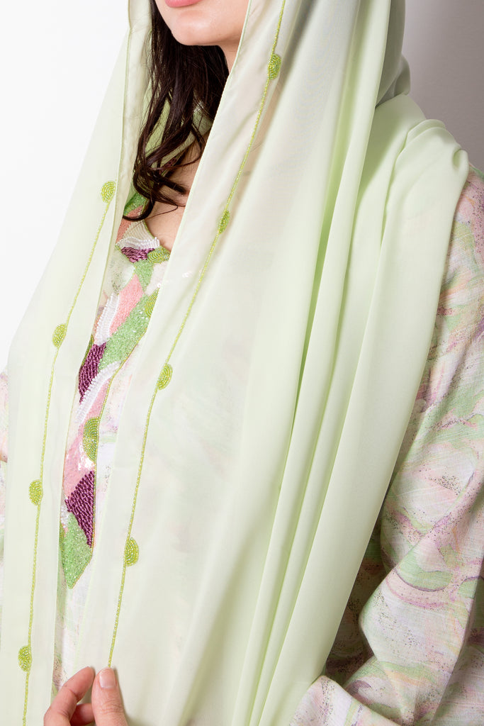 جلابية مخورة مخيوطة بشغل يدوي بتدرجات ألوان مختلفة : الوردي والأزرق والناري والأصفر والأخضر، دزاينات حصرية من تصاميمنا المميزة الخاصة بكولكشن رمضان والعيد ،يمكنك طلبها مع شيله طقم أو بدون.