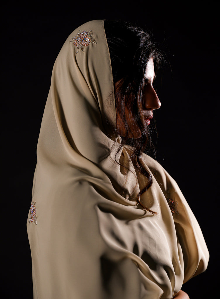 شيلة لورا صحرواي منثرات بأجود انواع الفصوص و الخرز خامة دجى الليل ثابتة عالراس وراقية.. تعطي طلتج انوثة و احتشام من تصميمنا الخاصة بشغل يدوي 100%