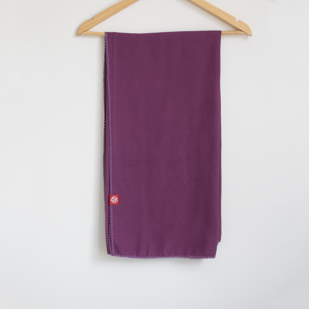 و أطرافها كروشيه اربع جهات، ثابتة على الراس راقية ناعمة وخفيفة خامة ويل مريحة وتتميز بالجودة العالية وممتازة للإستخدام اليومي، اللون: بنفسجي الطول: 214 سم العرض:106 سم